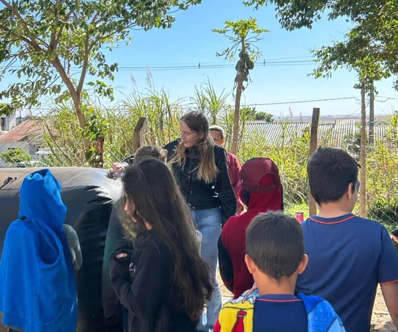 1 de outubro de 2025Na manhã de sexta-feira (27), os alunos do 3º, 4º e 5º ano da Escola Municipal 1º de Maio participaram de uma ação educativa sobre práticas sustentáveis. O projeto é uma parceria entre o município de Corbélia e a Itaipu Binacional e foi conduzido pela engenheira agrônoma Bruna Valente, da Secretaria Municipal de Agricultura, apresentando de forma prática o funcionamento de um biodigestor.