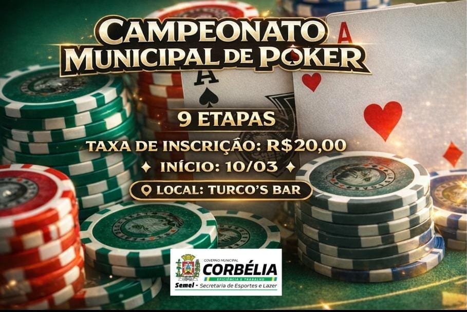 2 de março de 2026A Prefeitura de Corbélia, por meio da Secretaria Municipal de Esportes e Lazer (Semel), promove o Campeonato Municipal de Poker, que promete reunir os amantes da modalidade em uma competição marcada por estratégia, concentração e espírito esportivo. A primeira etapa será realizada no dia 10 de março, dando início a um circuito composto por nove etapas ao longo do ano.