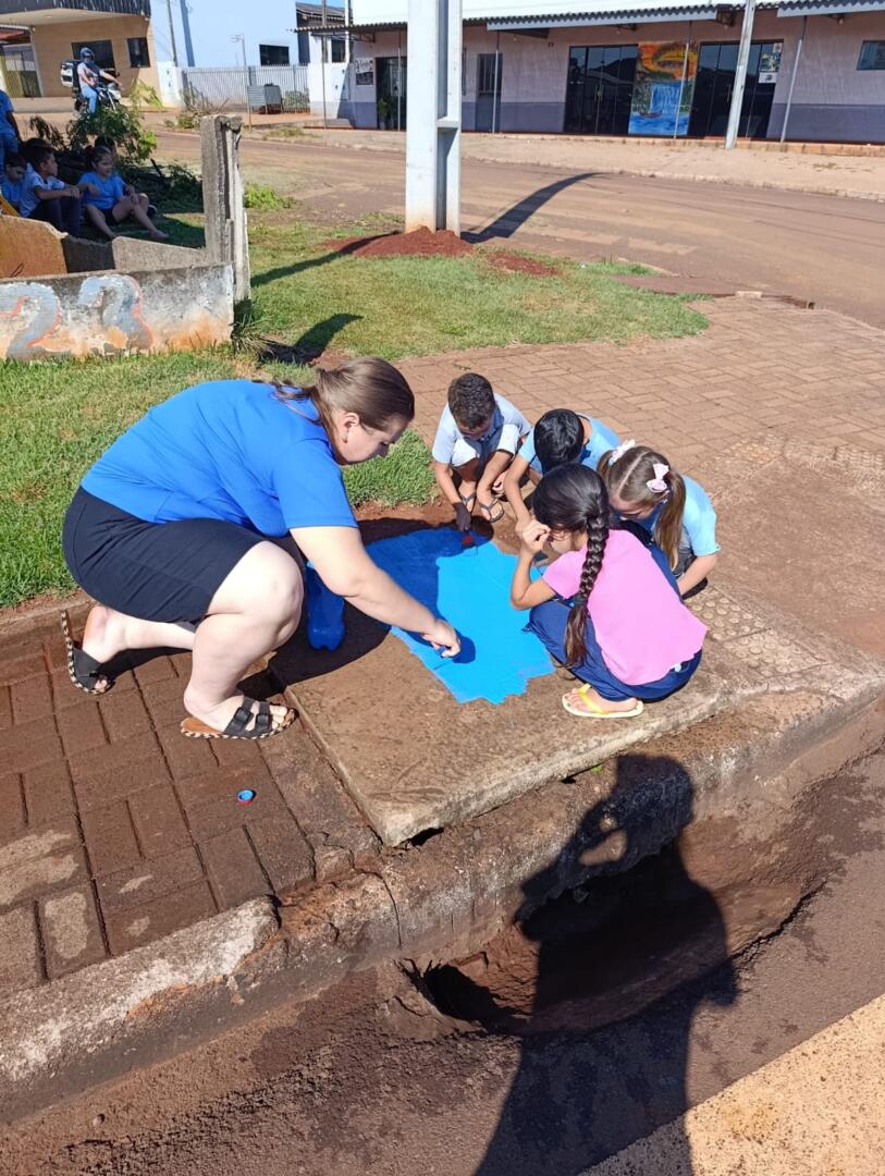 Como parte das ações práticas, mais de 14 bueiros estão sendo pintados com mensagens educativas, reforçando a importância do cuidado com a água e com o meio ambiente. A atividade une arte e aprendizado, transformando espaços urbanos em instrumentos de conscientização.